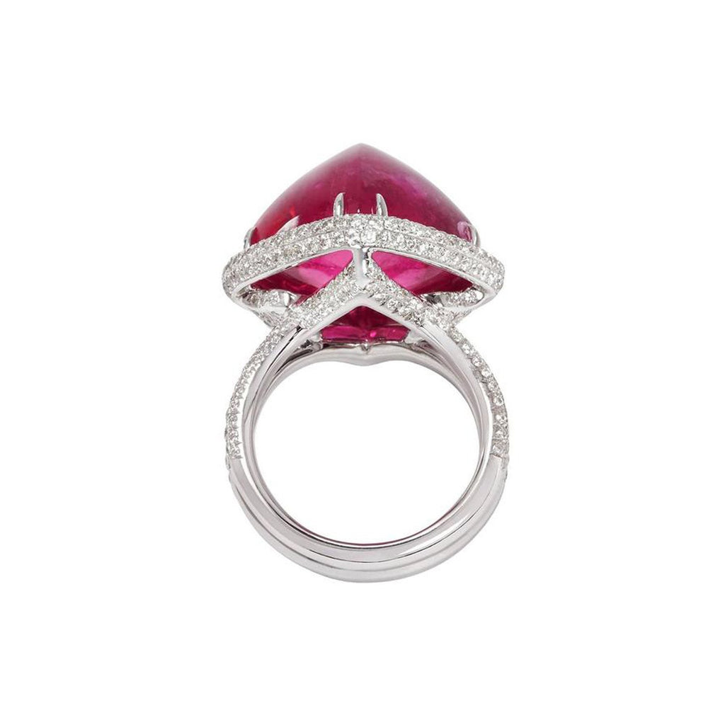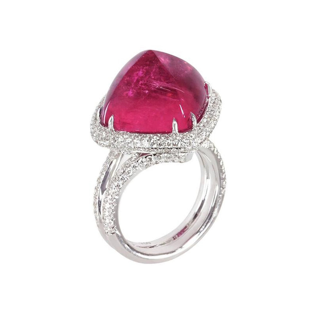 Sugarloaf rubellite tourmaline centre citrine, amethyst, white topaz and lemon quartz Faucet ring
