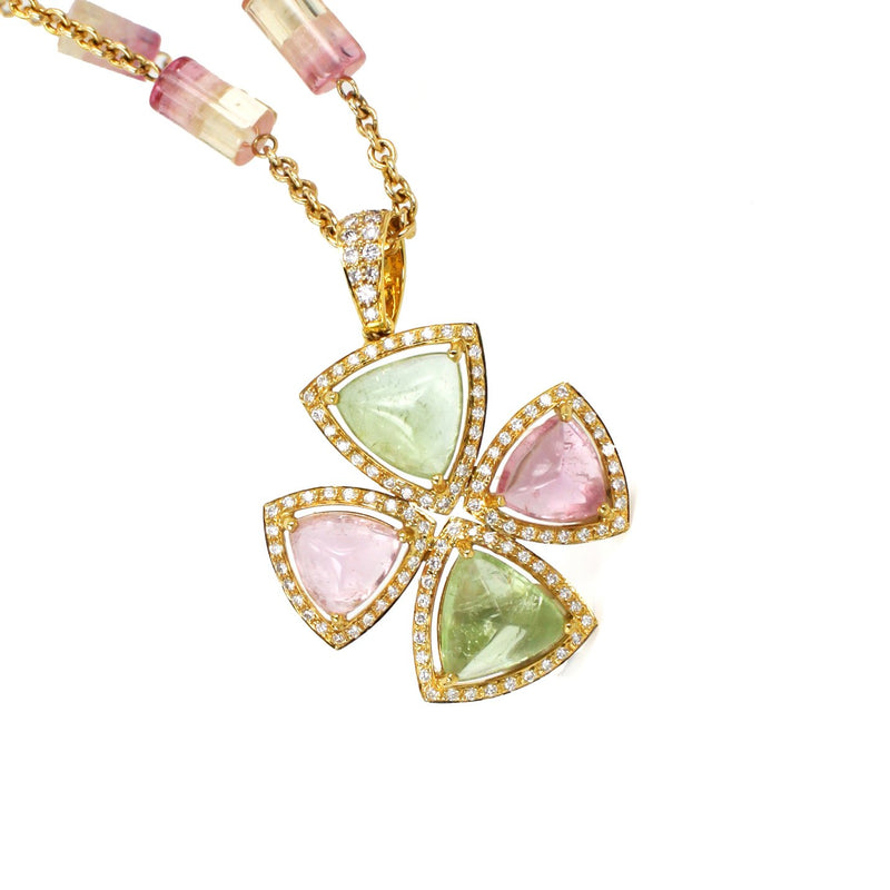 Sugarloaf Green and Pink Tourmaline Diamond Pendant